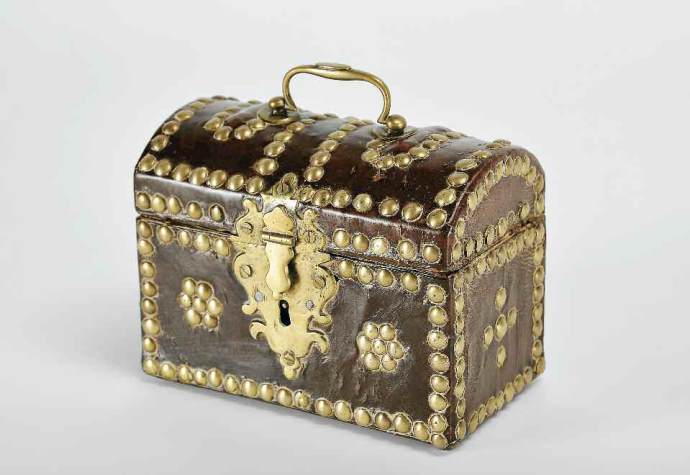 fully leather lined wood studded with nails,