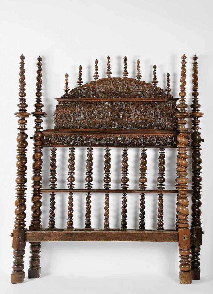 pau-santo torneado e entalhado, aros em bronze,