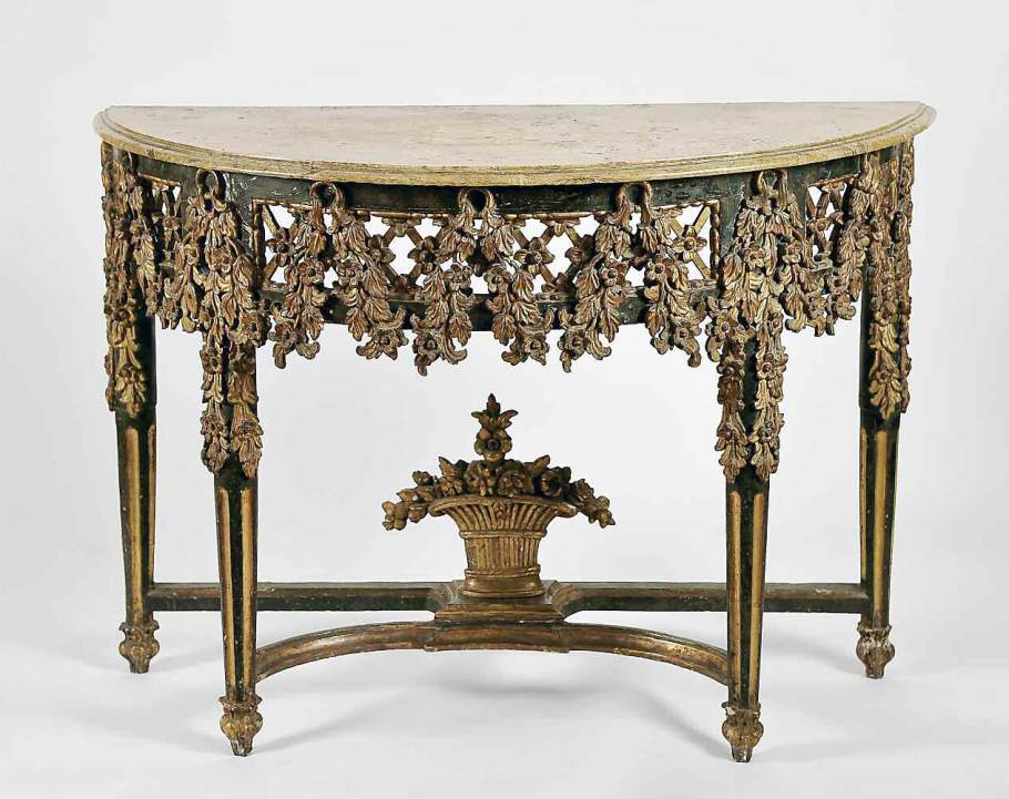 madeira entalhada, marmoreada e dourada, tampo de mármore,