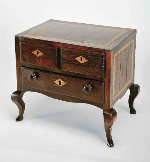 turned handles, satinwood inlaid keyholes, Portuguese,