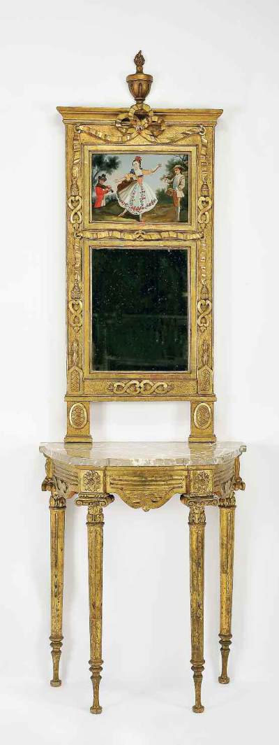 alçado com espelho e pintura sobre vidro “Cena galante”,