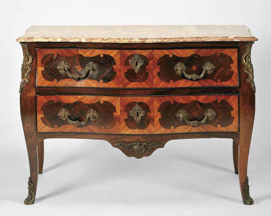 in the French manner, Brazilian rosewood and kingwood marquetry,
