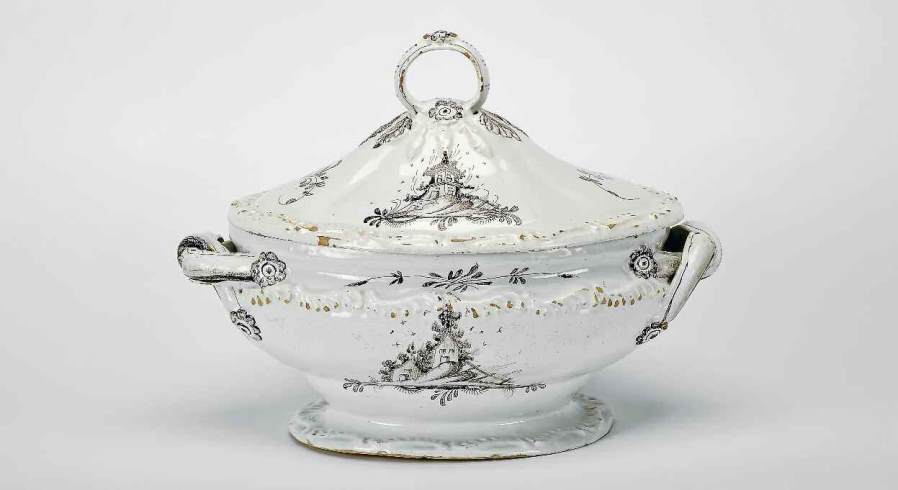 faiança de Viana, decoração relevada e a vinoso “Paisagem com casario”,