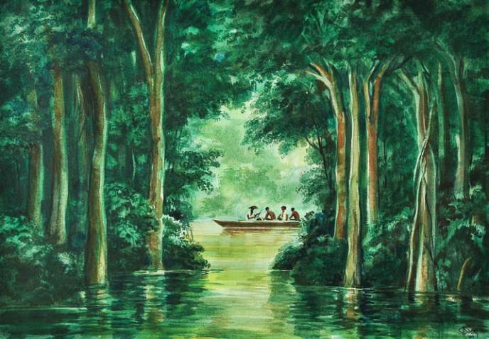 AISAGEM AFRICANA COM BARCO E FIGURAS