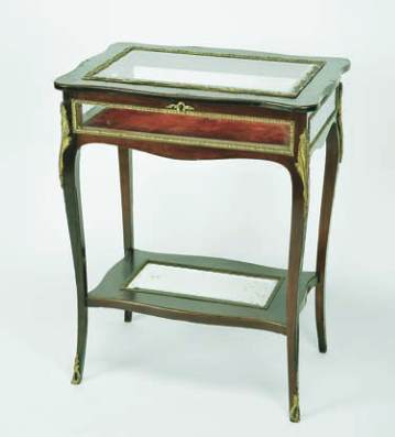 Napoleão III, pau-santo, tampo e laterais com vidros, aplicações em
