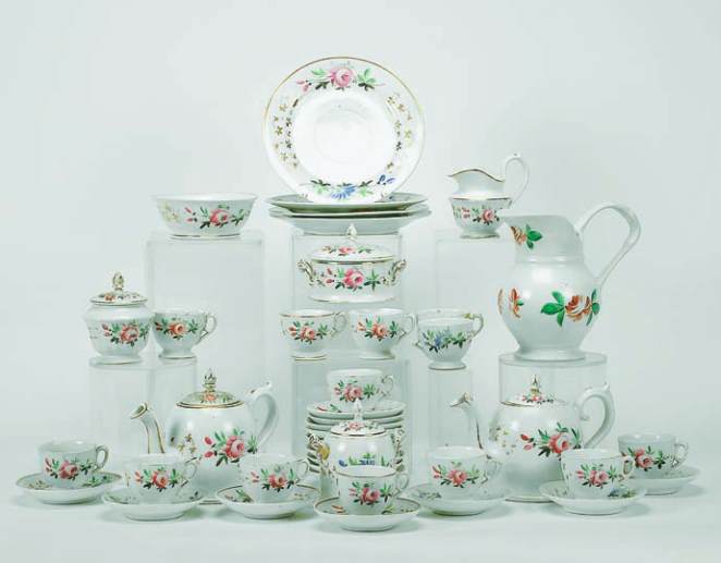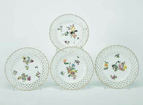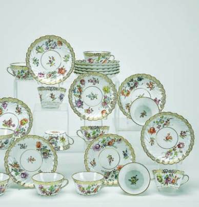 porcelana de Dresden, decoração policromada e dourada “Flores”,