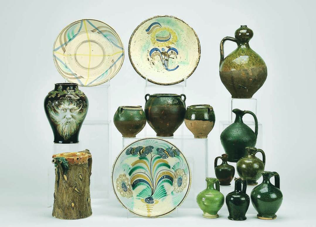 barro vidrado, decoração naturalista relevada “Tronco e bolotas”,