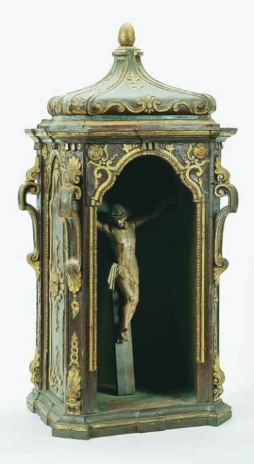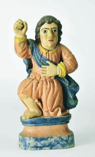 escultura em teca policromada, Índia, séc. XVII/XVIII,