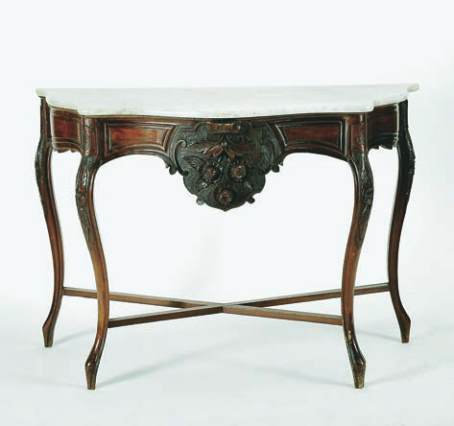 romântica, nogueira com entalhamentos,