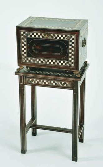 a ébano e marfim “Triângulos”, ferragens em cobre dourado,