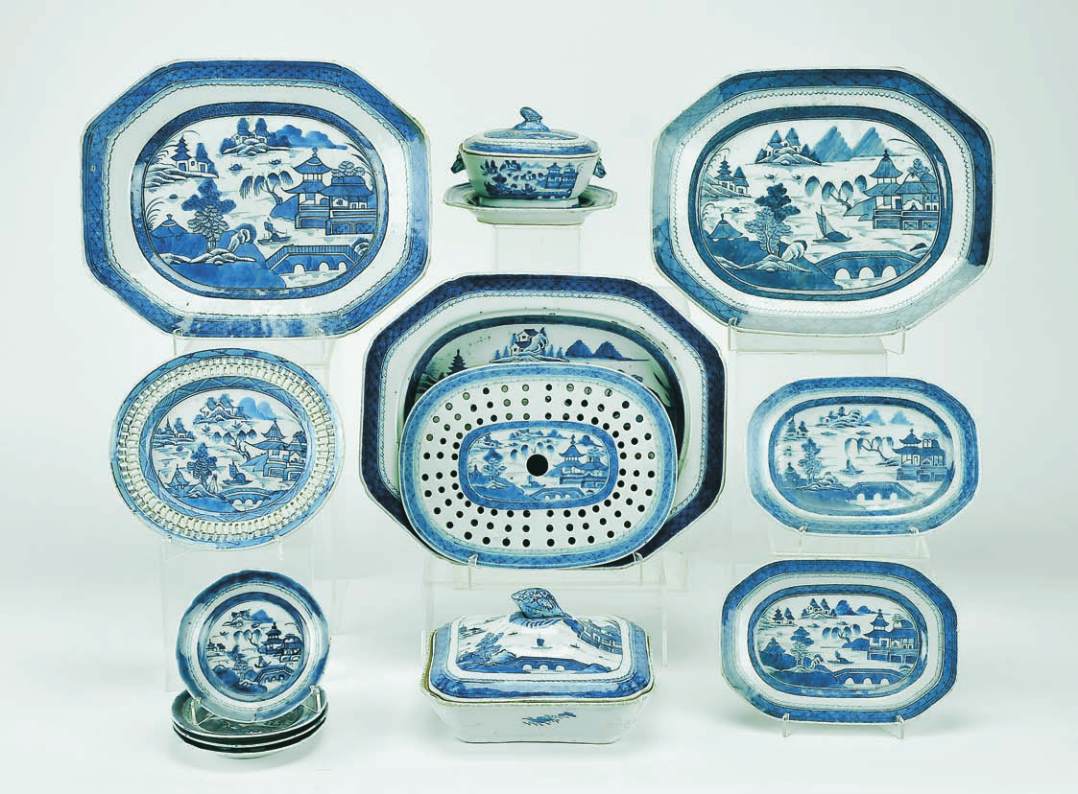 porcelana chinesa de exportação, decoração a azul “Cantão”,