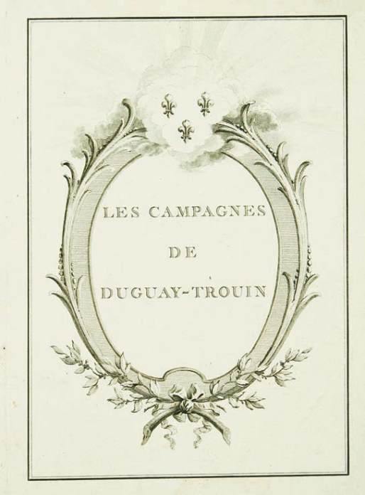 Edição inteiramente gravada a talhe-doce, constituída por um anterrosto, um retrato de Duguay-Trouin, lieutenant général des armées