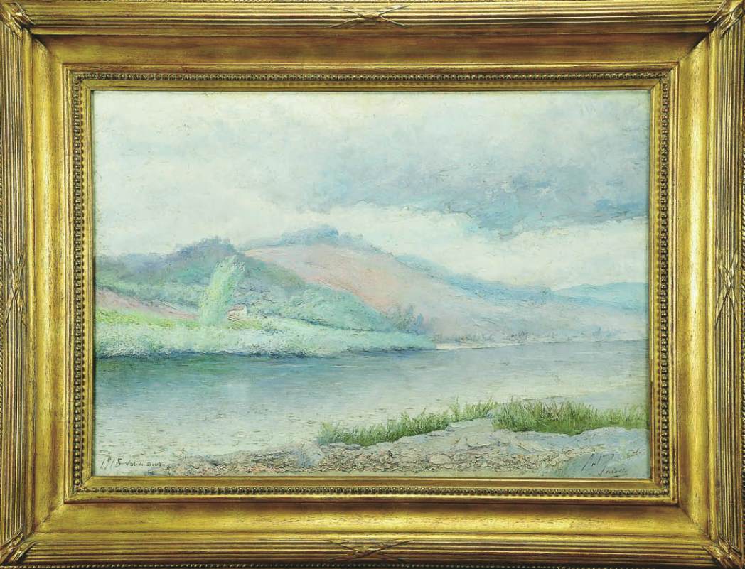 óleo sobre tela, reentelado, assinado e datado de 1918
