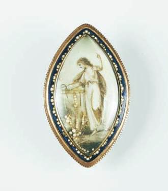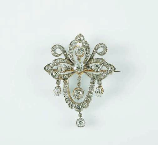 Arte Nova, ouro e prata, cravejado com 4 diamantes em talhe