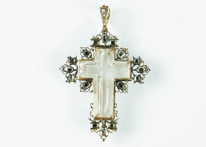 and rose cut crowned one, reliquary in carved rock crystal (clear quartz),