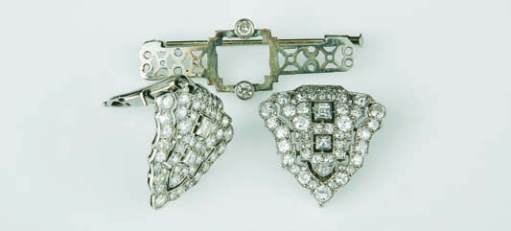 Art Déco, platina, cravejado com 4 diamantes em talhe antigo