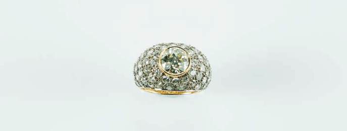 bicolour gold, set with 1 brilliant ancient cut yellow shade diamond
