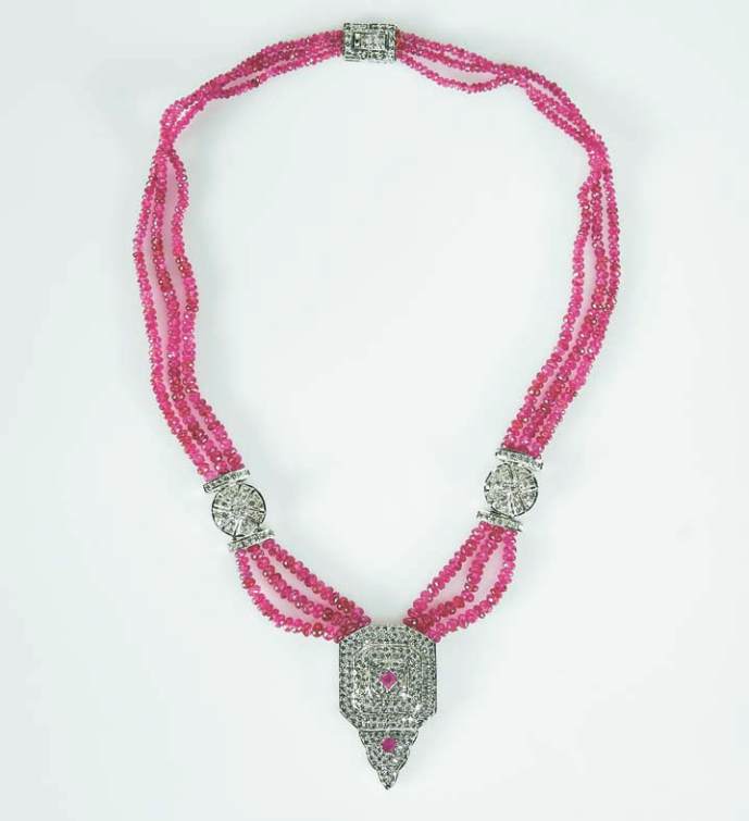 composed of 3 strings of ruby cut beads(3~3,5 mm),