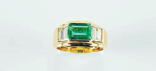 estilo Art Déco, ouro, cravejado com esmeralda da Colômbia