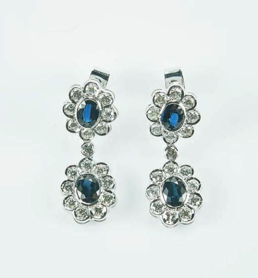 ouro, cravejados com 4 safiras em talhe oval com o peso