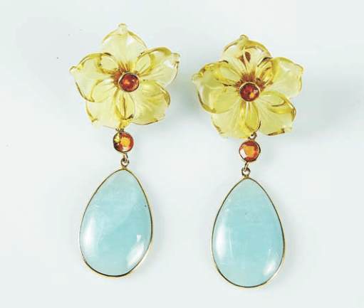 18 Kt. gold frame, “Flower” carved lemon quartz upper part,