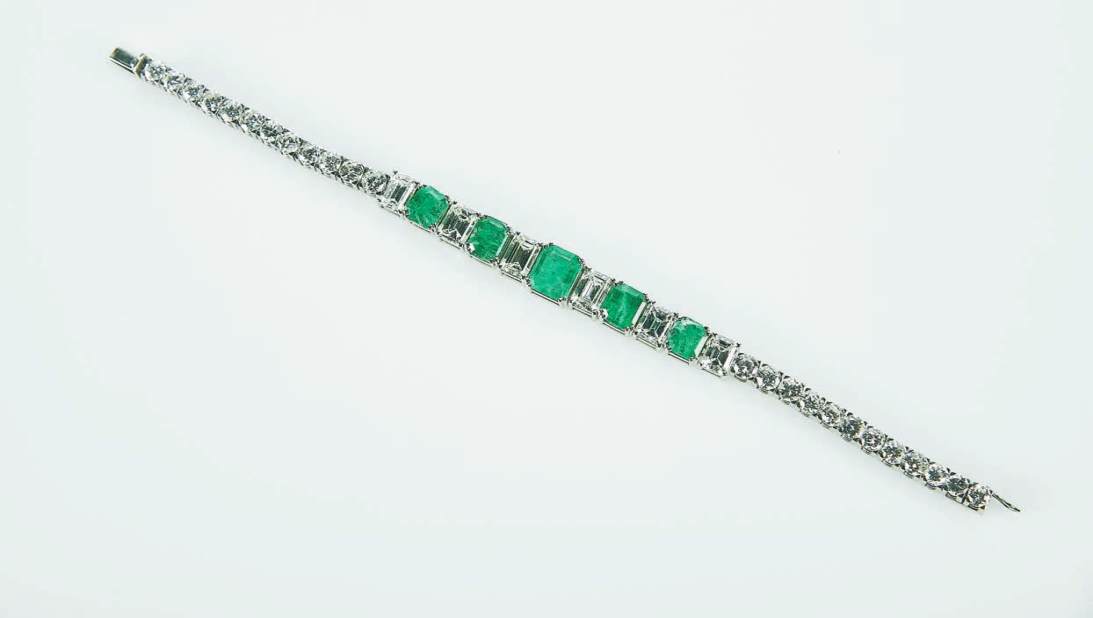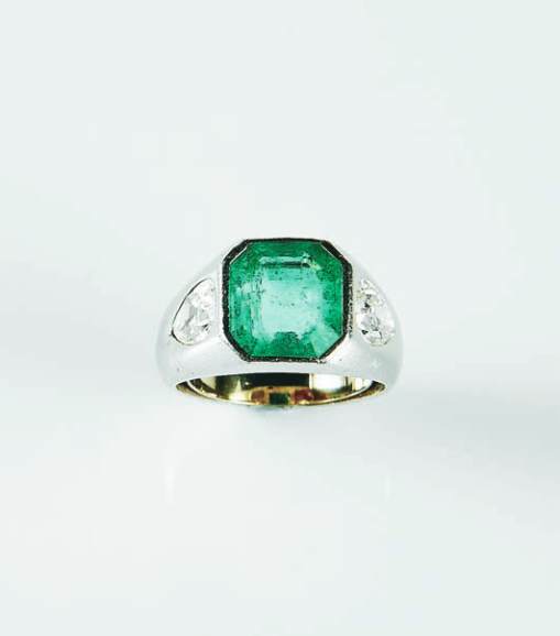 platinum, set with 5 emeralds with the approximate weight of 8,50 ct.,
