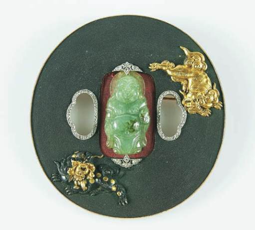 em jadeíte, “Leões” em ouro gravado e cinzelado e platina
