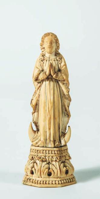 Lusíada, escultura em marfim, coroa em prata, vertente