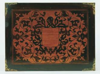 sissoo inlays “Coat of arms with helmet and vegetalist motifs”, chambered interior,