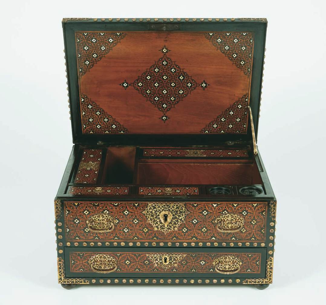 tinteiro e areeiro de ébano, vertente indo-portuguesa, séc. XVII (2ª metade),