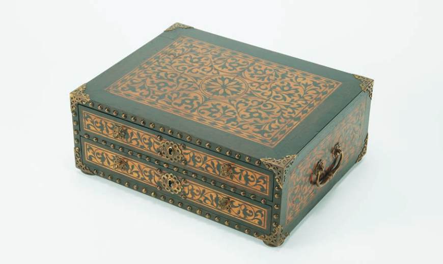 com divisórias para tinteiro e areeiro, vertente indo-portuguesa, séc. XVII (2ª metade),