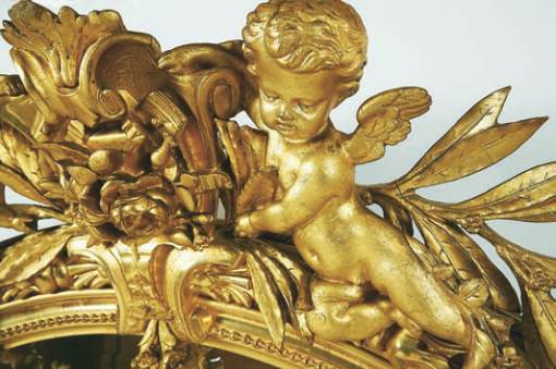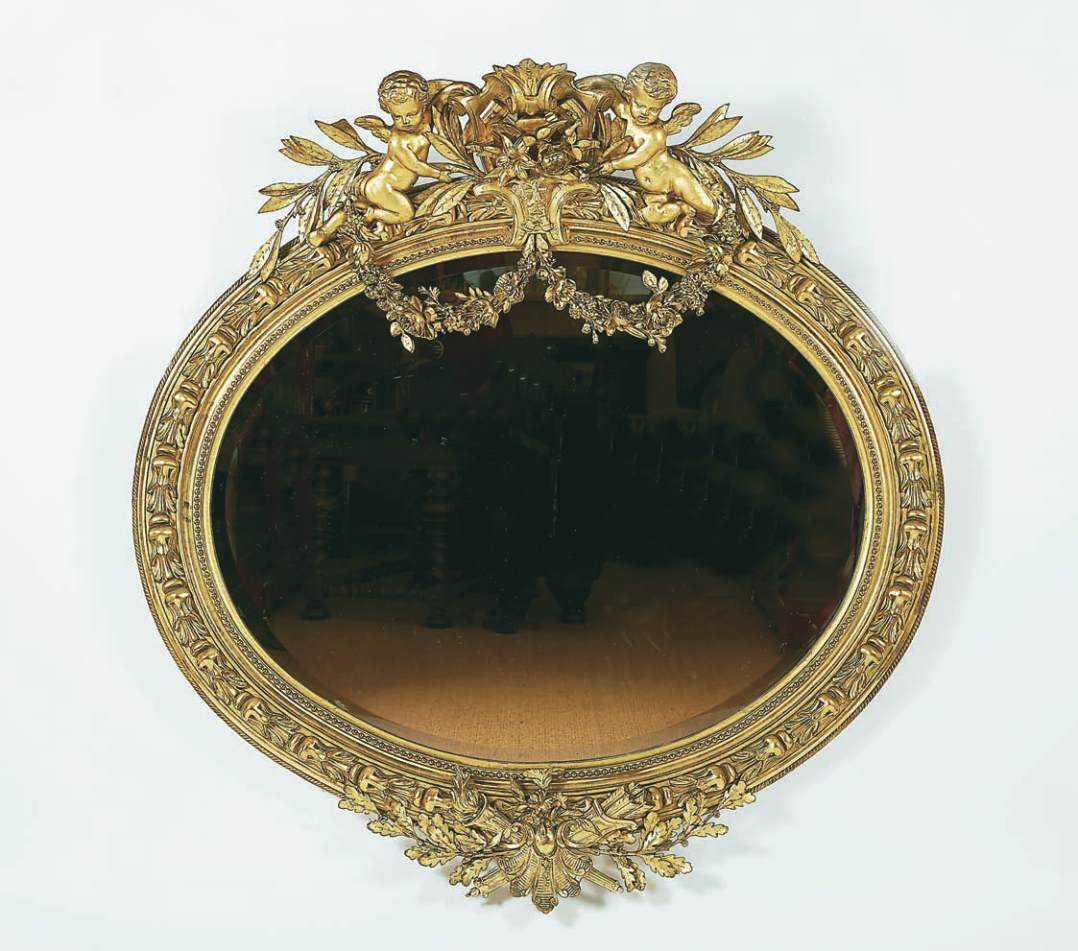 grinaldas de flores, facho e setas”, vidro bizoté,