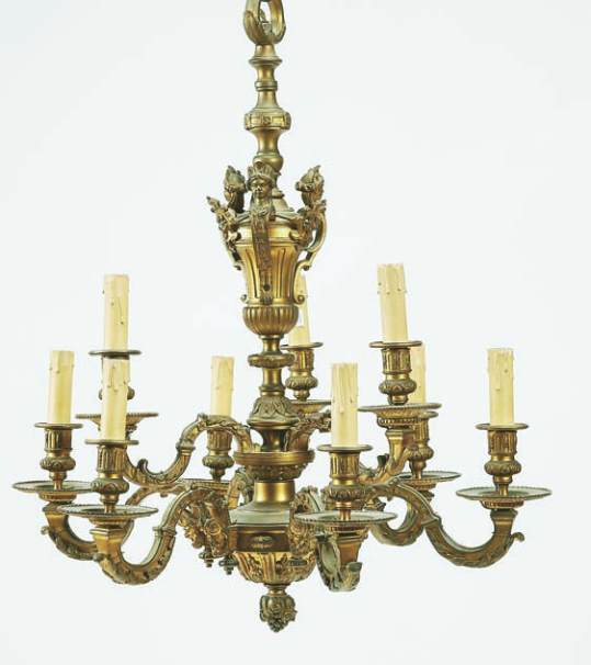 bronze, decoração relevada e dourada “Mascarões e grinaldas