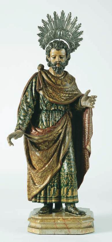 escultura em madeira policromada e dourada, espanhola, séc. XVII/XVIII,