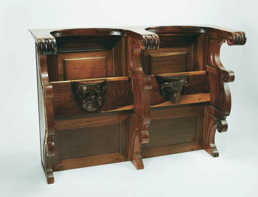 pau-santo com entalhamentos “Carranca” e “Cabeça de carneiro”,