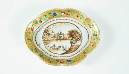 gilt decoration, central reserve “Sea harbour with european figures”,