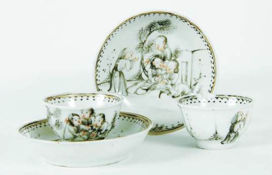 porcelana chinesa de exportação, decoração a «grisaille» e ouro