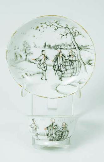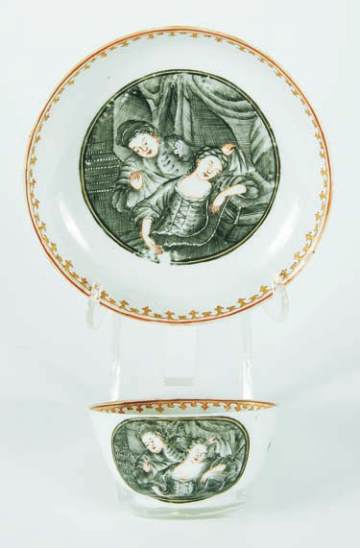 porcelana chinesa de exportação, decoração a «grisaille» “Paisagem com figuras