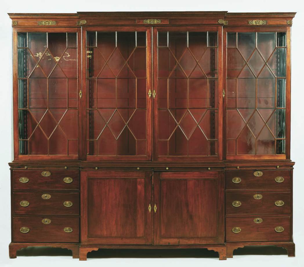 lower body with drawers, drawers and stretchers, glazed upper body,