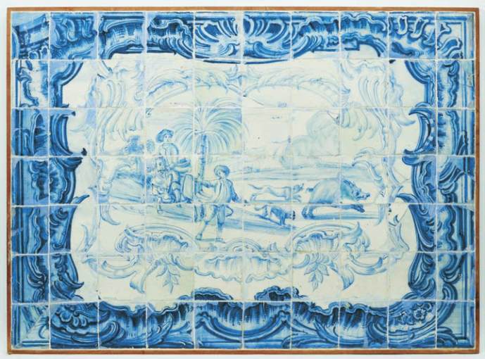 D. José (1750-1777), painel de 70 azulejos, decoração a azul,