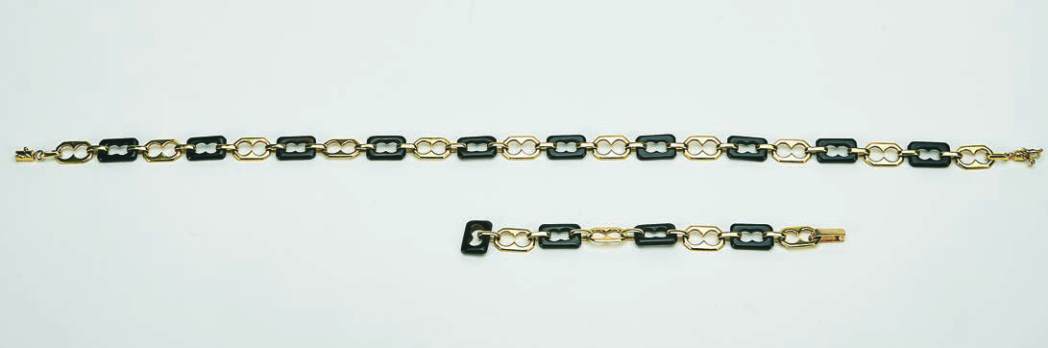 ouro (18 kt.), intercalado por elos de azeviche esculpido, italiano, séc. XX,