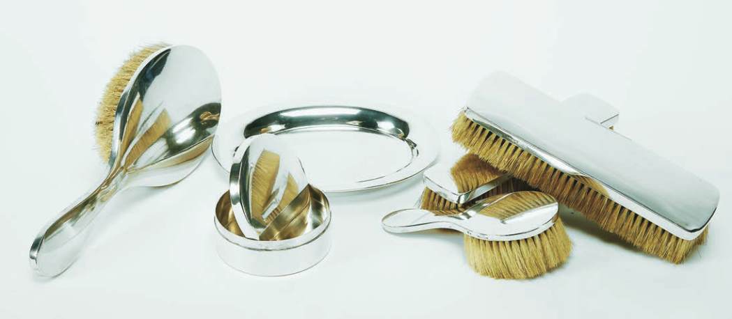 prata, composto por 4 escovas, caixa redonda e aneleira,