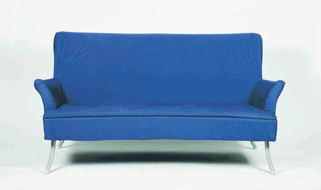 estrutura tubular em metal, assento de poliuretano revestido a algodão azul, italiano séc.