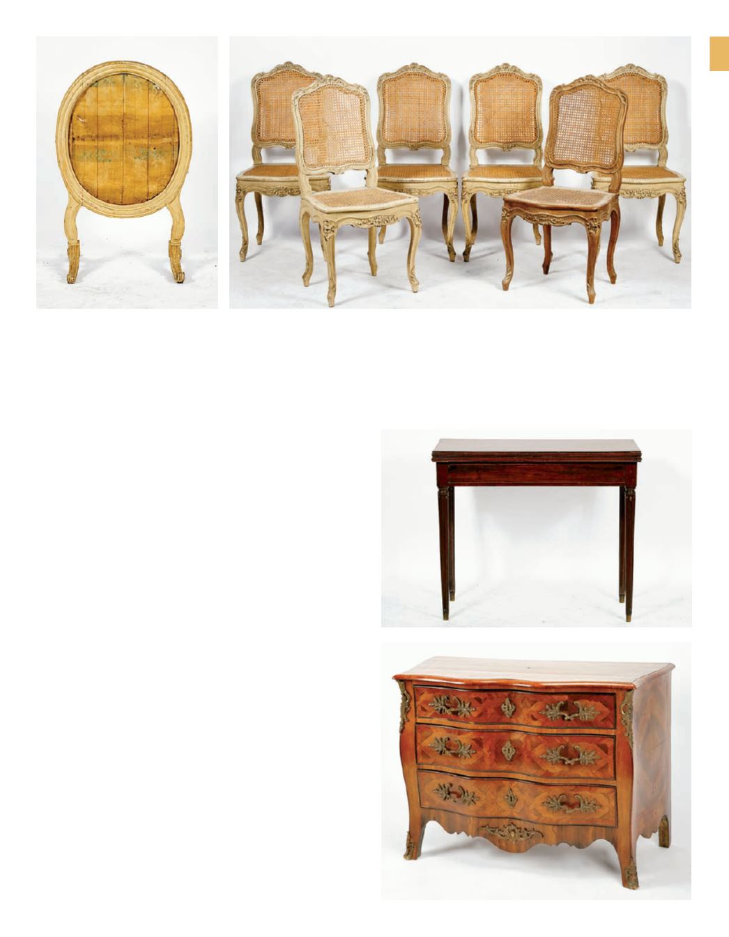 estilo Luís XV, faia entalhada e pintada, assentos e costas de palhinha,